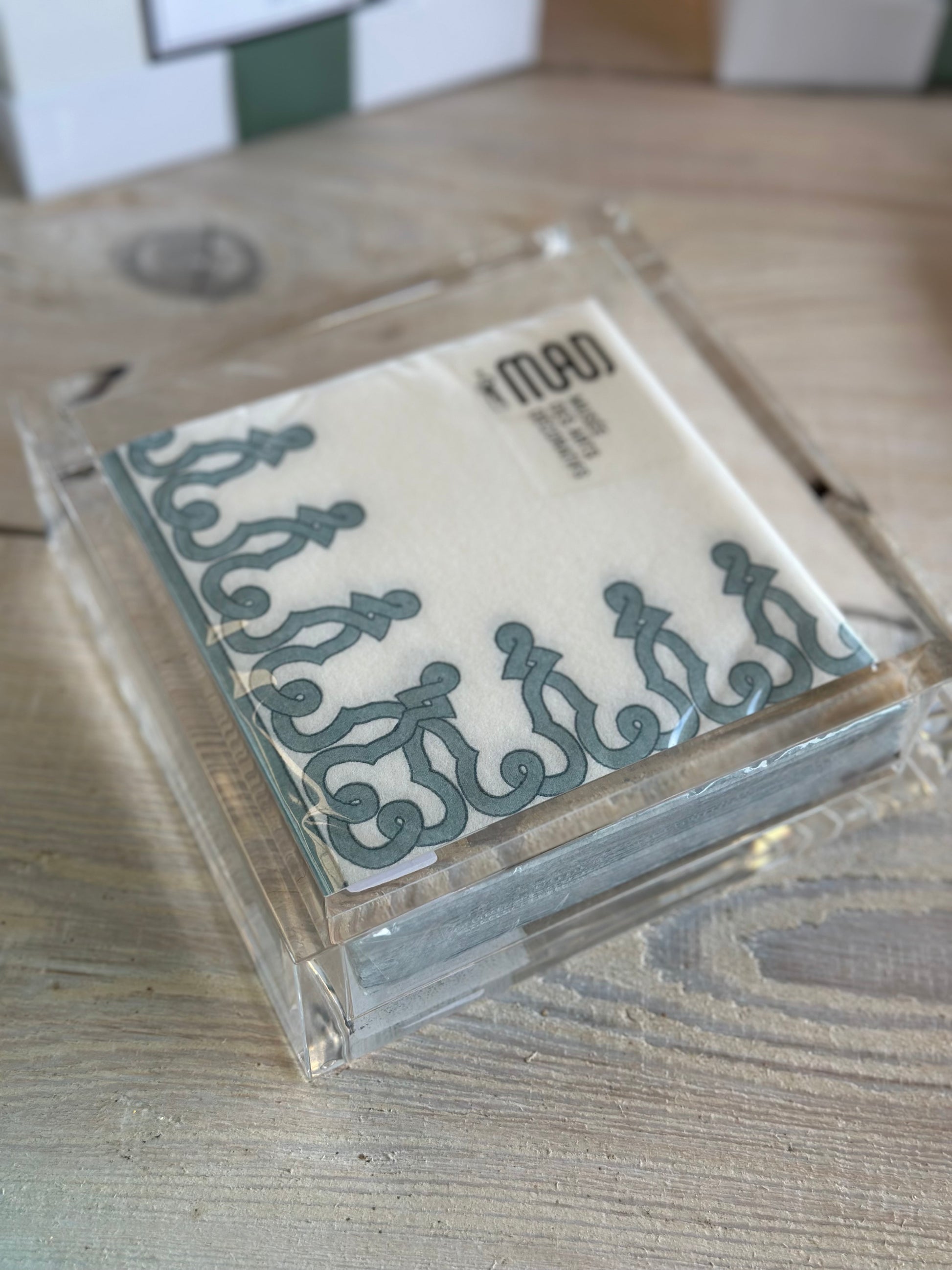 Caspari Paper Linen Cocktail Napkins - Stone Blue Dessin Passementerie
